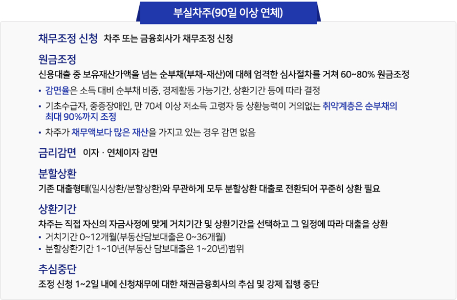 - A: 새출발기금을 통한 채무 조정은 신용등급에 부정적인 영향을 미치지 않습니다. 오히려 정상적인 상환을 통해 신용등급이 개선될 수 있습니다.