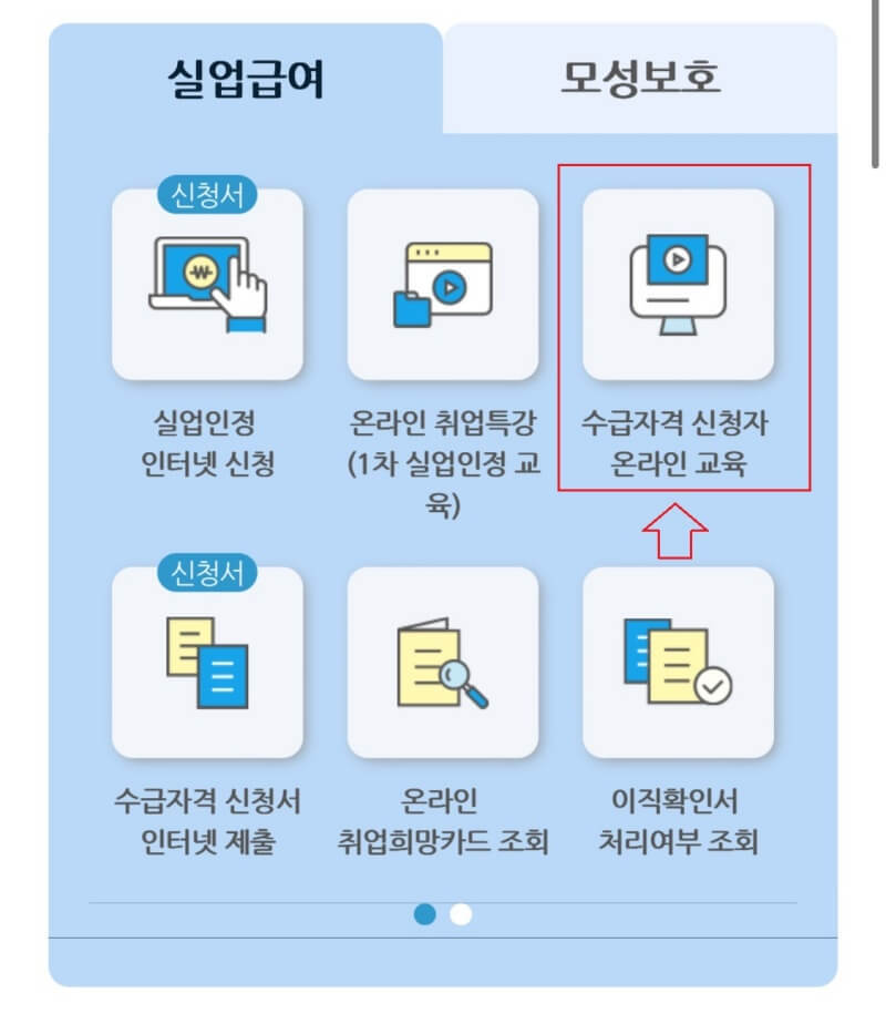 고용보험 사이트에 로그인하여 수급자격 신청자 온라인 교육을 듣고 이수 여부를 확인하세요.