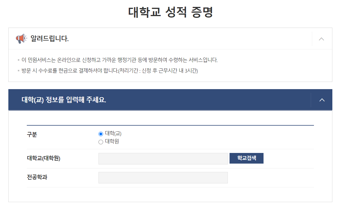 웹민원센터를 통한 대학교 성적증명서 발급 방법