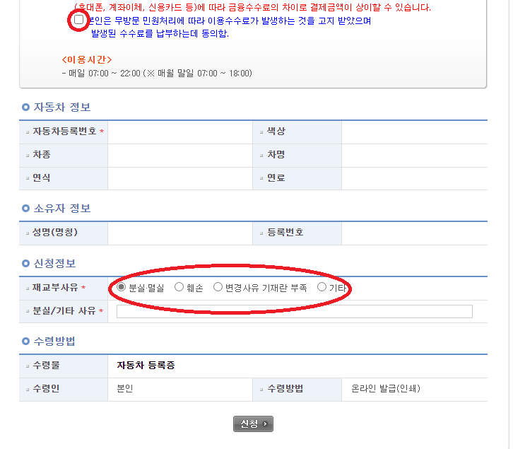 - 방문 장소: 가까운 동사무소 또는 구청의 자동차등록 담당 부서