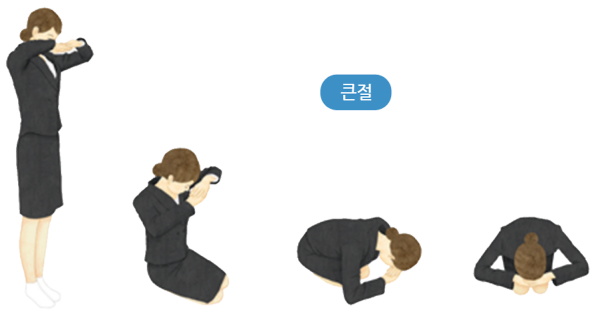 - 큰절 두 번 하기: 공수한 손을 눈높이로 올리고 절합니다.