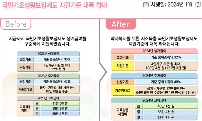 A: 기존 수급자는 자동으로 연장되지만, 소득이나 가구원 수 변동 시에는 반드시 신고해야 합니다.