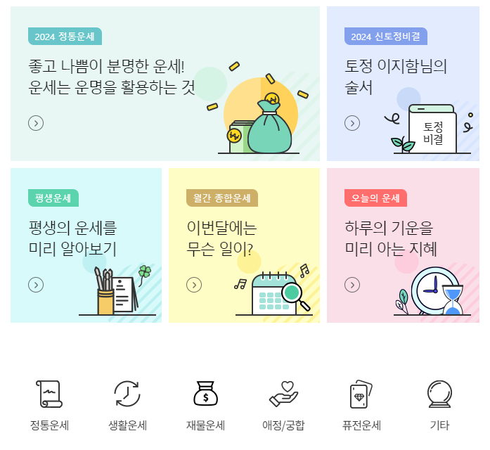 - 공식 사이트 접속 및 운세 메뉴 선택