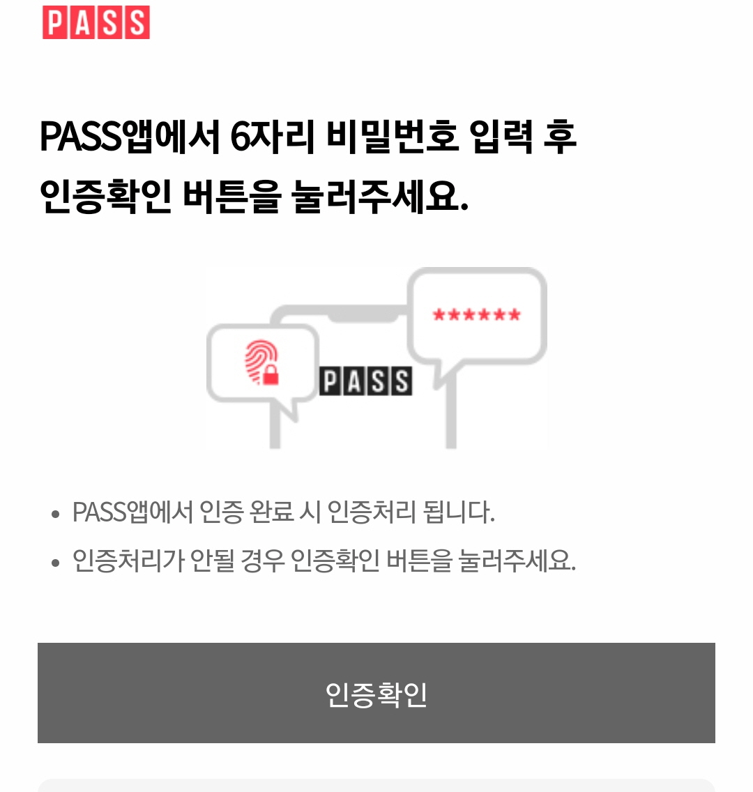 - PASS 앱에서 설정한 비밀번호 입력