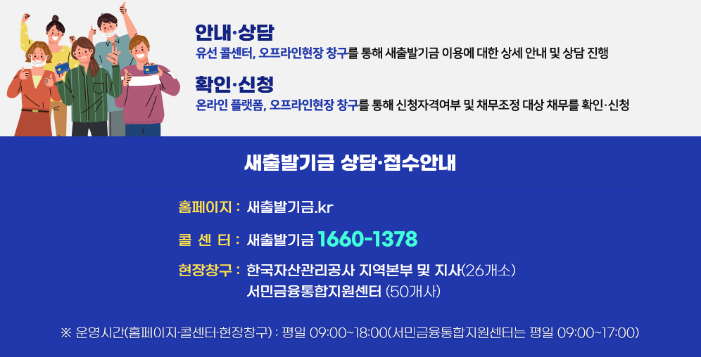 소상공인 여러분, 어려운 시기를 함께 극복해 나가겠습니다. 소상공인 새출발기금에 대해 더 자세한 정보가 필요하시다면 소상공인시장진흥공단 홈페이지를 방문하시거나 전화 상담을 이용해 주시기 바랍니다. 여러분의 성공적인 새출발을 응원합니다!