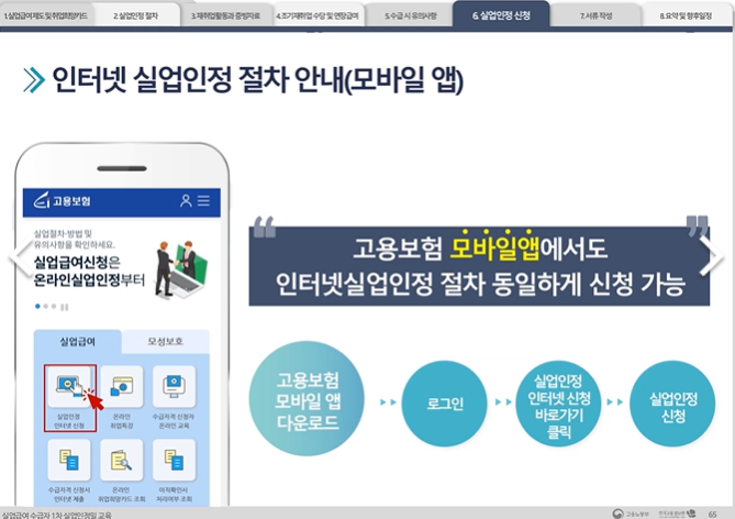 고용보험 사이트에 로그인하여 수급자격 신청자 온라인 교육을 듣고 이수 여부를 확인하세요.