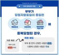 동일 세대에서 중복으로 청약 신청을 하면 모두 무효 처리될 수 있습니다. 신중하게 선택하여 한 번만 신청해야 합니다.